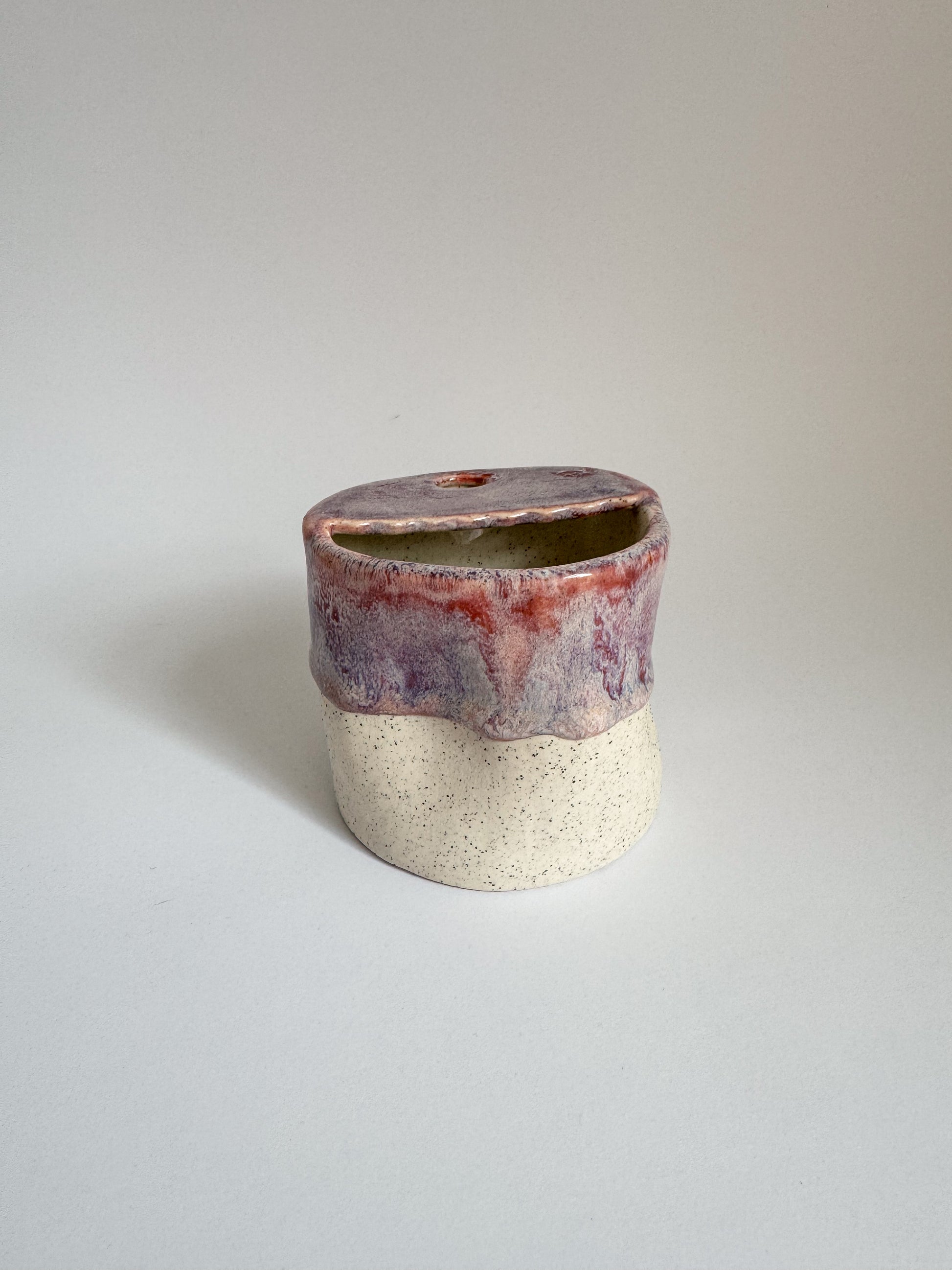 Handmade ceramic travel mug finished in a beautiful speckled clay with stunning purple drippy glaze. This mug features thumb dents to fit snug in your hand and gives it a wavy vibe.